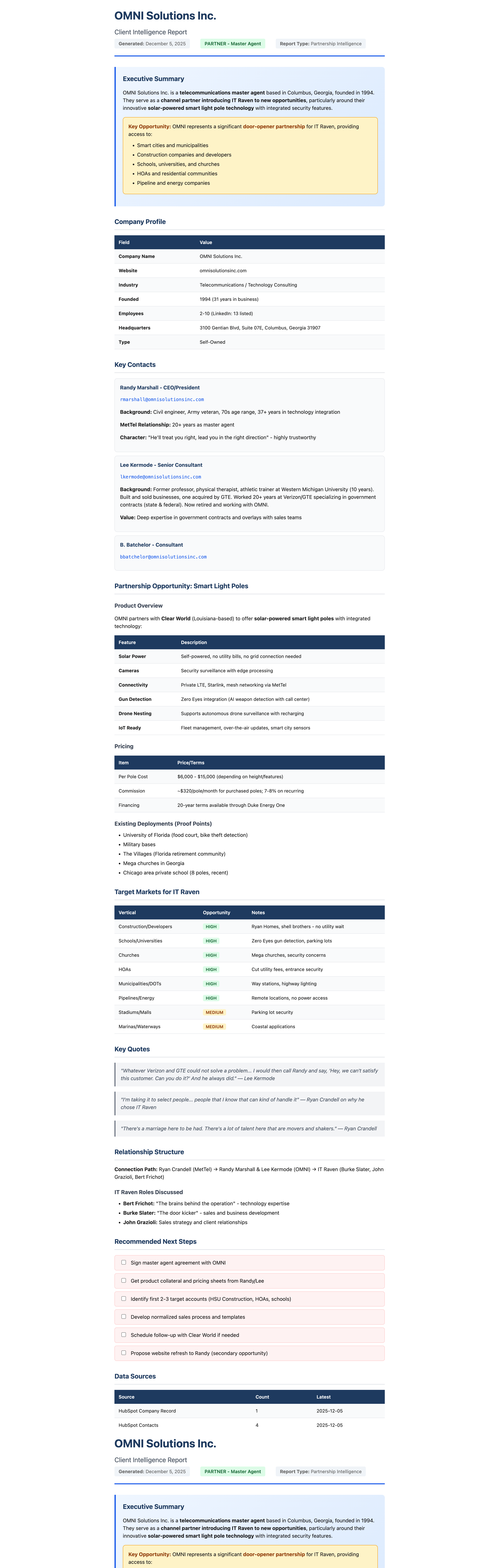 Just ask: "Give me a Client 360 on Acme Corp" — report delivered in minutes