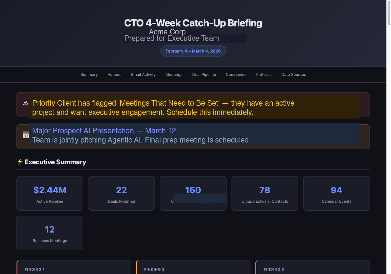 Get notified when relationships cool off, deals stall, or competitors are mentioned. Never be blindsided.